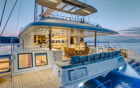 Le Lagoon 620 est un luxueux catamaran réputé pour son confort et sa modernité. Avec une longueur de 19 mètres et de vastes espaces de pont, y compris un grand flying bridge, il offre plus qu'assez d'espace pour la détente et la convivialité. A l'intérieur, le design élégant se caractérise par un espace de vie moderne et ouvert, avec des fenêtres panoramiques offrant des vues à couper le souffle. Le yacht est également doté de systèmes de navigation avancés et d'équipements de haute qualité, garantissant une expérience de croisière fluide et agréable.